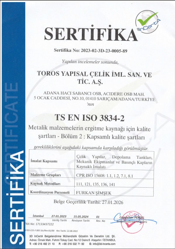 Tüm inşaat ve imalat süreçlerinde kalite kontrol ekipleri devreye girer. Malzeme seçimi, üretim ve montaj aşamalarında ulusal ve uluslararası standartlar takip edilir.